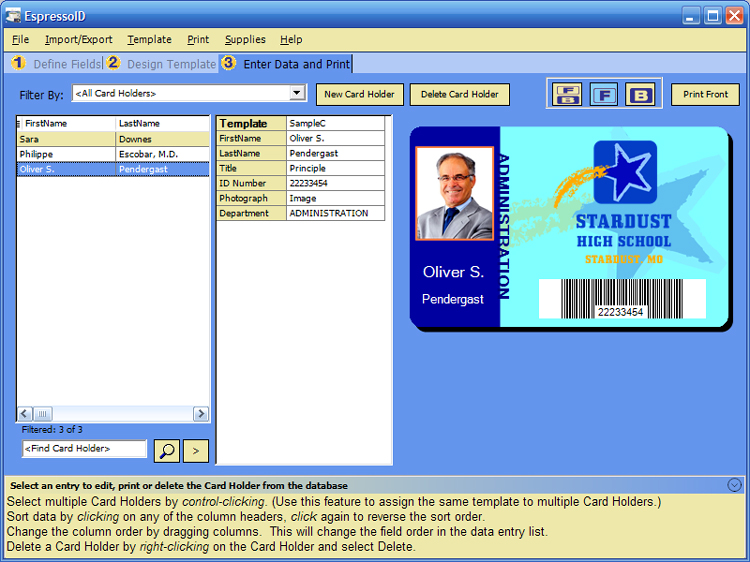 Note: The sample cards are stored in an EspressoID backup file. Restoring this backup